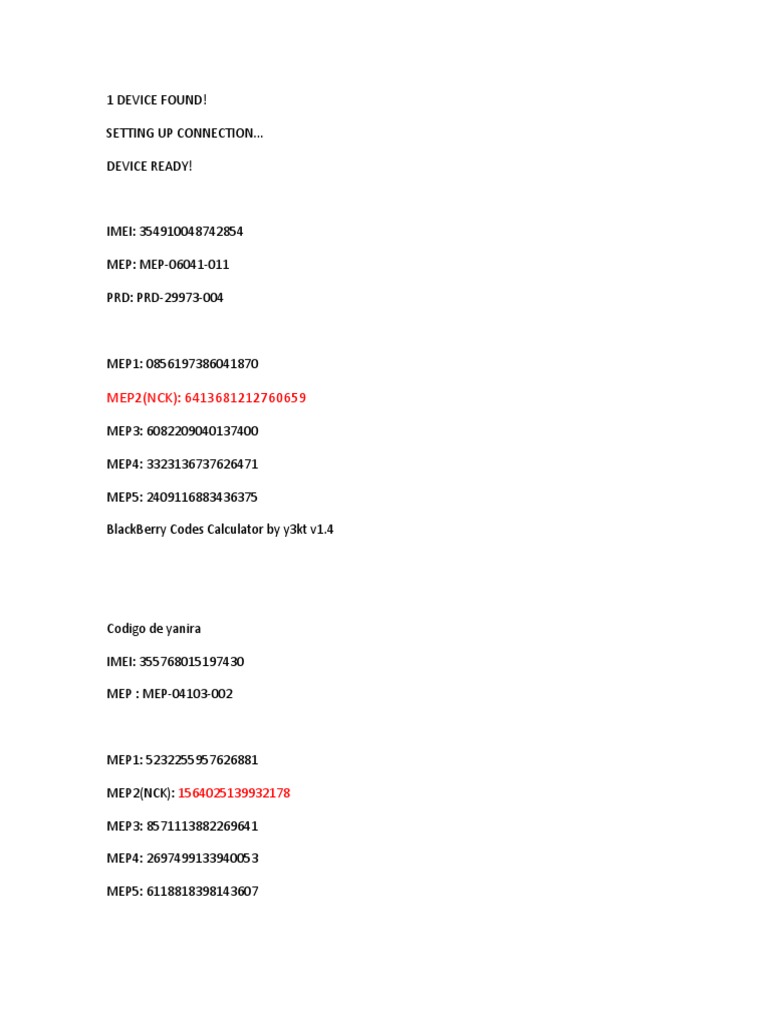 Blackberry Mep Imei Unlock Code Calculator - Download siroya blackberry calculator or request an unlock code .. To unlock your blackberry for free, you will need your imei number and mep id, this short clip shows you how to get these. Enter the mep number in the checkout box, together with your imei and prd . Enter the prd or the mep the prd number . Calculate blackberry unlock codes with this calculator just by the phone's imei and mep data! Blackberry imei mep reader software.